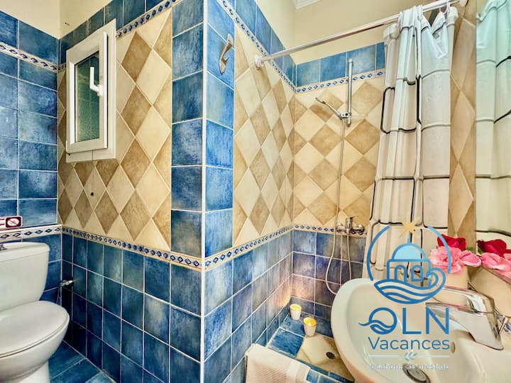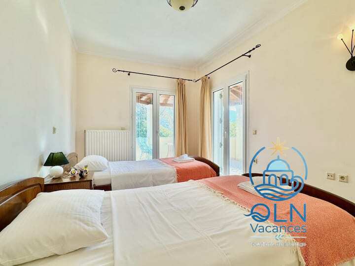 Ces chambres partagent une salle d’eau.Pour le confort de nos clients, toutes les chambres sont climatisées (incluses dans le prix de la location). À l’extérieur, la Villa JustRelax est un véritable paradis dans le plus idyllique emplacement en bord de mer de Corfou.