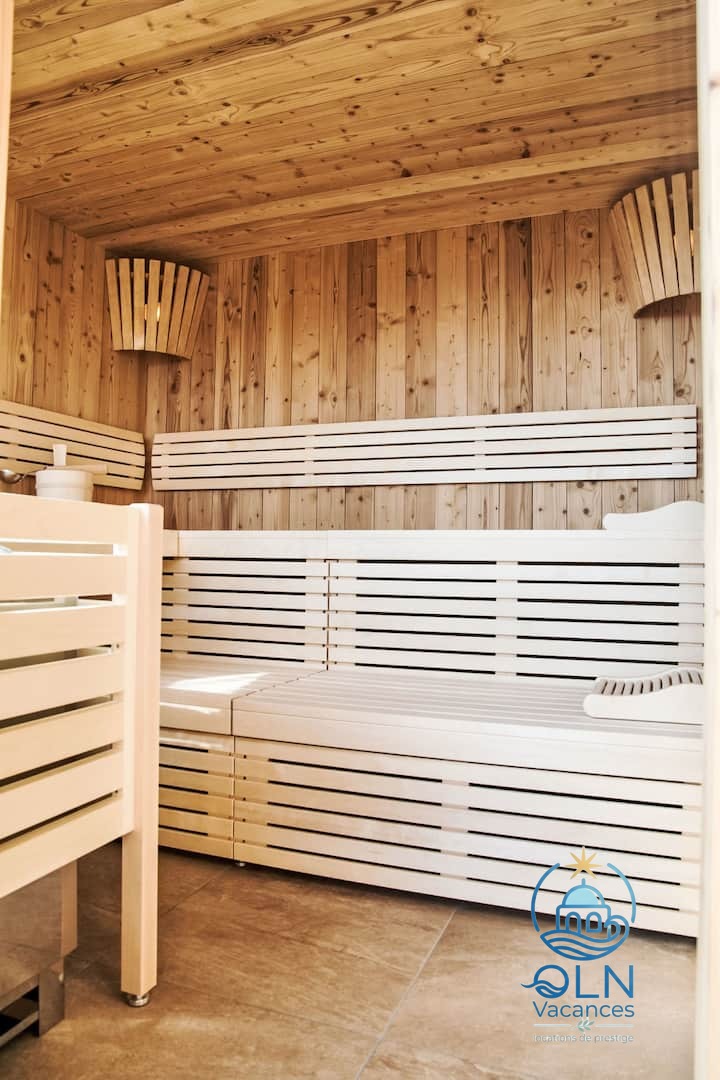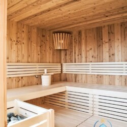 Vous pouvez également profiter en extérieur d’un sauna sec finlandais avec une vue panoramique à couper le souffle.