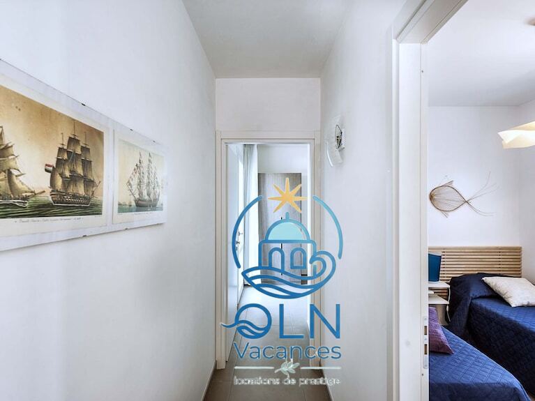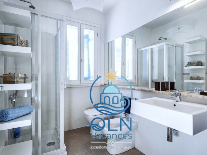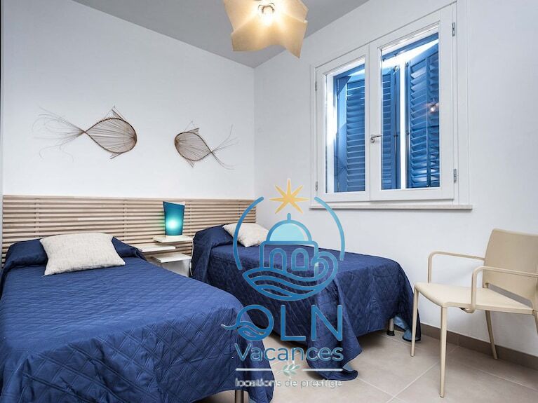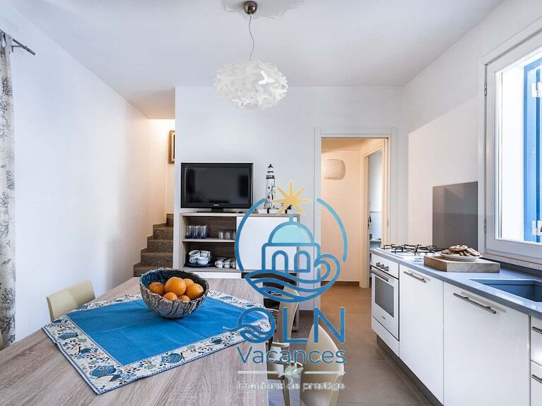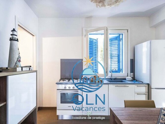 L’emplacement pratique de la demeure, à deux pas de la plage et à quelques centaines de mètres du centre du village, est idéal pour passer des vacances confortables sous le signe du soleil, de la mer et du divertissement.