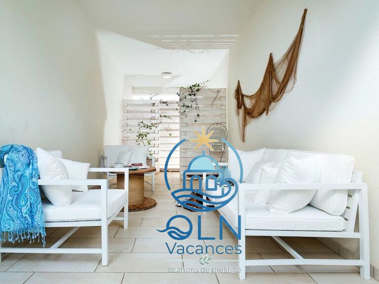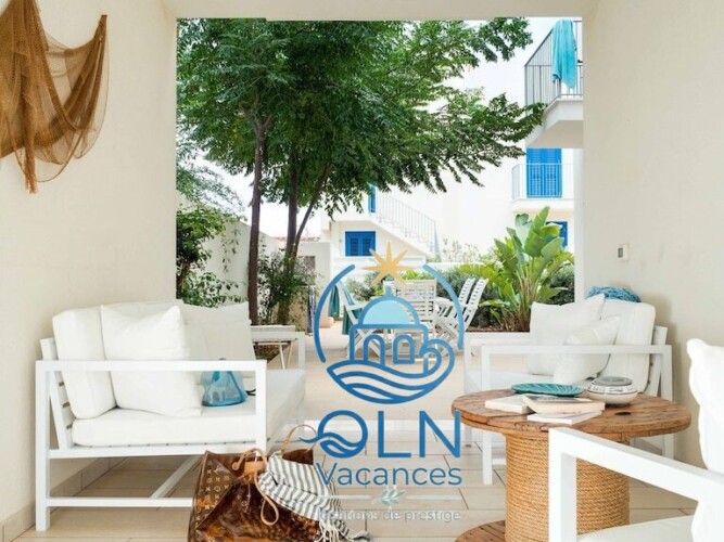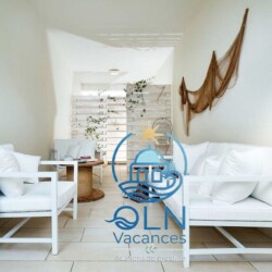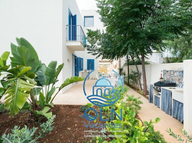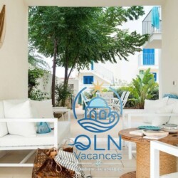 Récemment construite, la demeure se caractérise par des pièces intérieures fraîches et bien agencées, meublées avec goût et fonctionnalité.