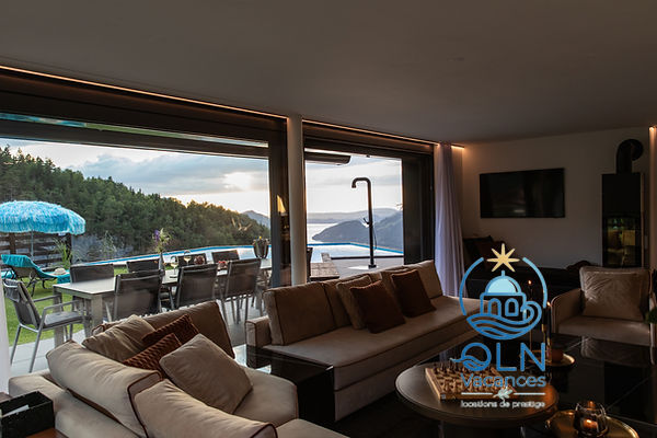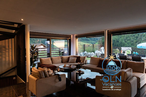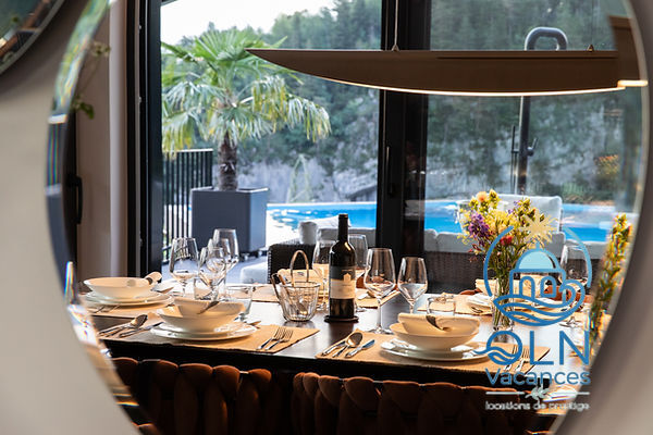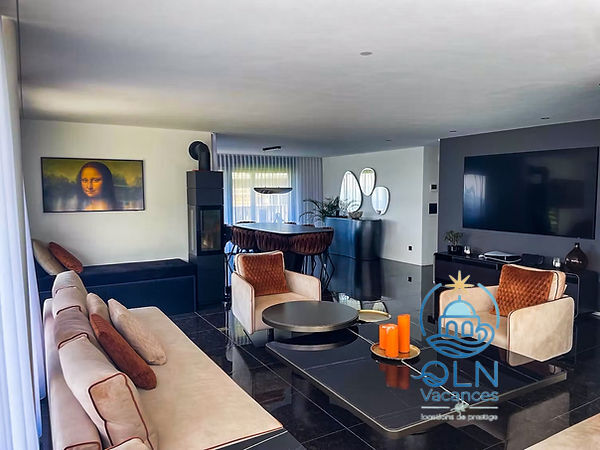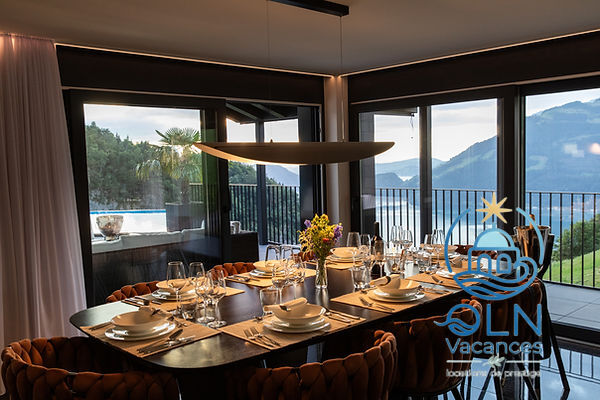 Le logement : Villa 5 pièces 250 m2 sur 2 niveaux.Spacieux, aménagement moderne et de style: grand séjour/salle à manger avec table pour les repas.