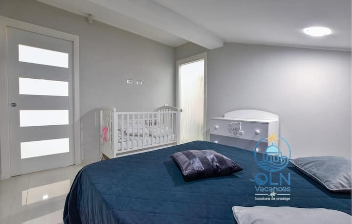 Cette maison spacieuse allie un design élégant au charme italien et vous offre, sur deux étages baignés de lumière, tout ce dont vous avez besoin pour des vacances reposantes.