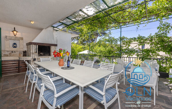 La maison de vacances dispose d’une piscine extérieure et est entourée de pins.