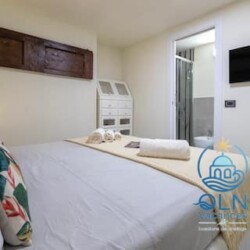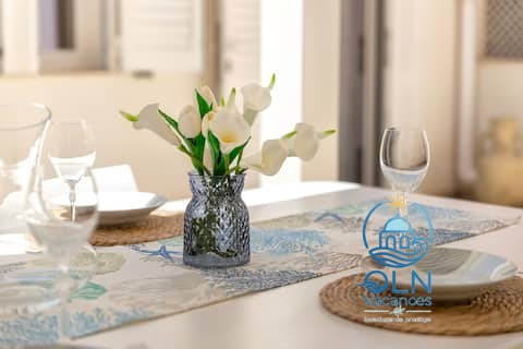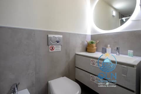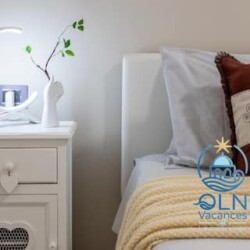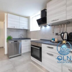 La propriété de 90 m² comprend un salon avec une kitchenette, 2 chambres et 2 salles de bains et peut accueillir 4 personnes.
