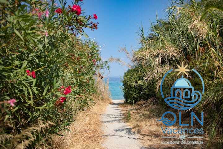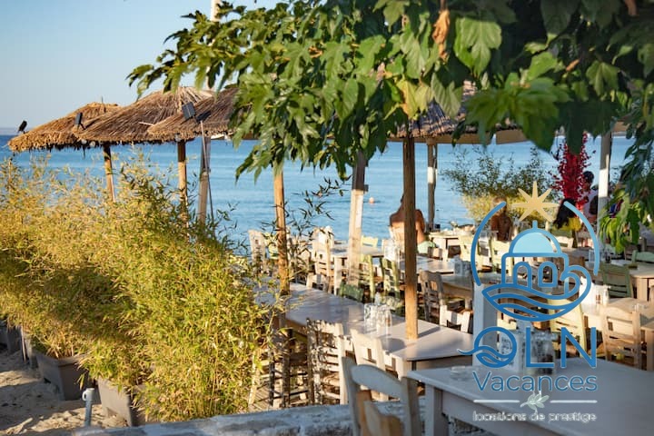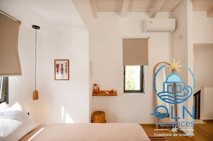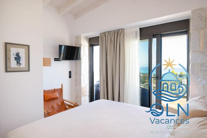Idéalement située, la villa offre à la fois tranquillité et commodités : à deux pas des commodités et des magnifiques plages de Chanioti, elle permet aux hôtes de découvrir facilement ce village balnéaire animé, de profiter des tavernes et cafés locaux, ou de passer des journées paisibles à admirer la vue depuis la terrasse.