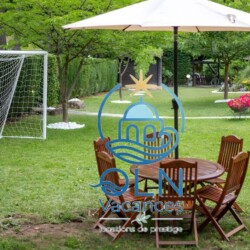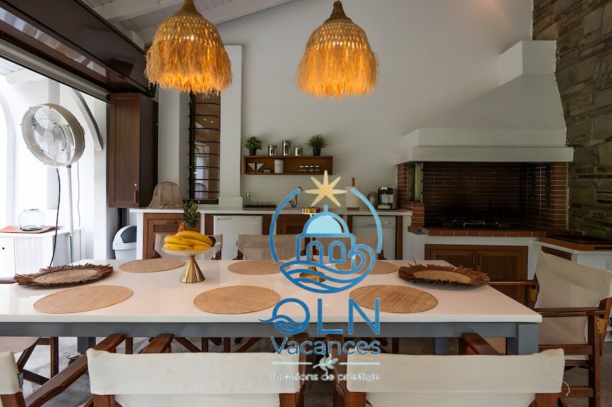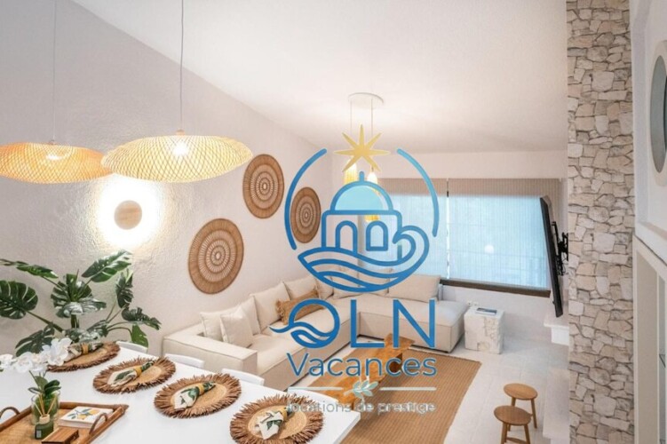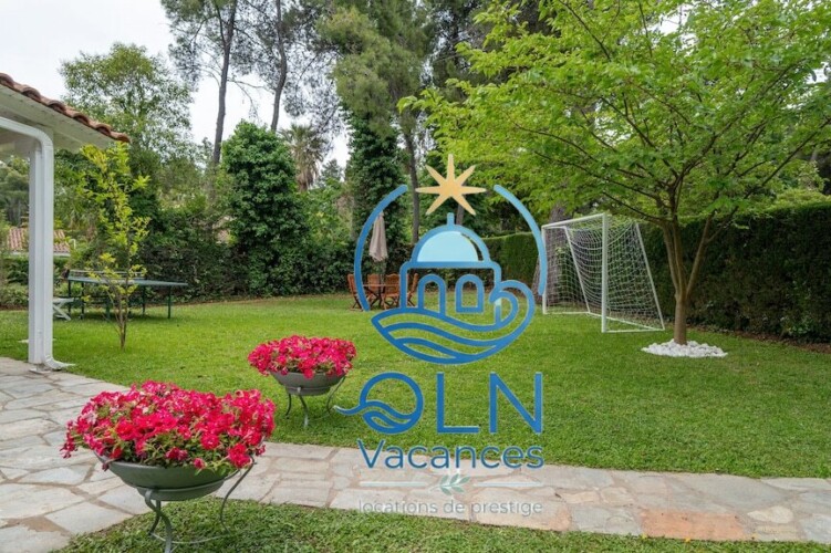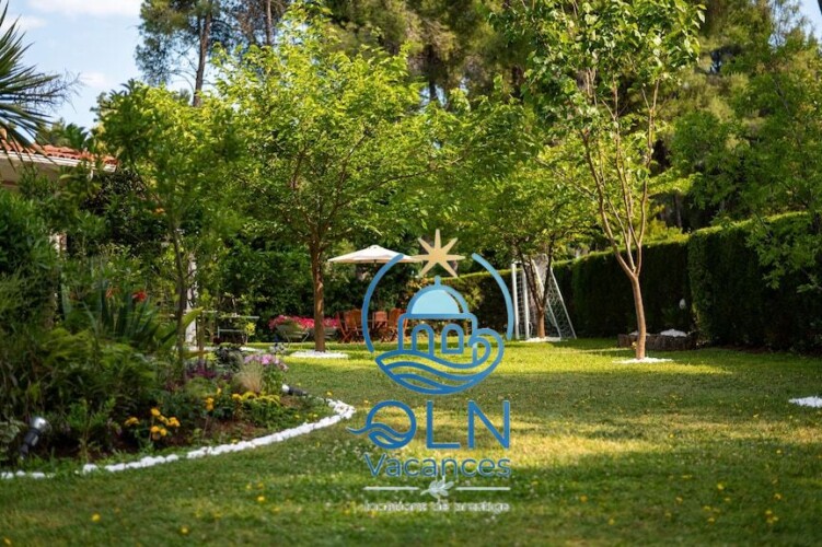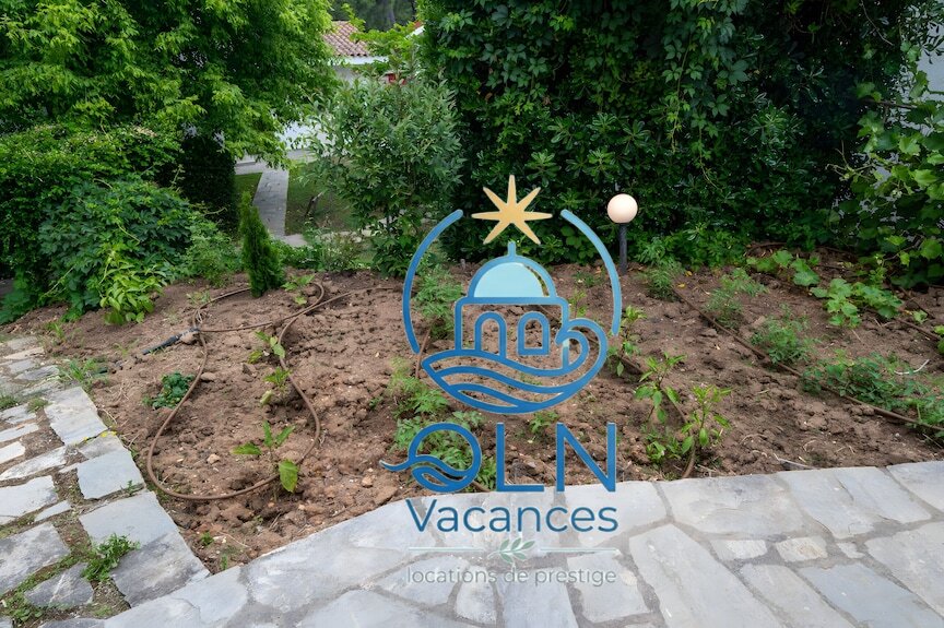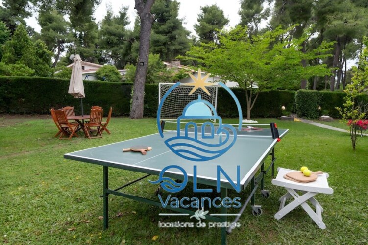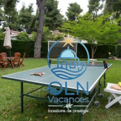 L’extérieur est un véritable havre de paix : jardin luxuriant avec rocaille, herbes et fleurs, barbecue pour vos repas d’été, mobilier de jardin confortable, table de ping-pong, cage de foot, transats et accès à la piscine commune du complexe pour vous rafraîchir à tout moment.