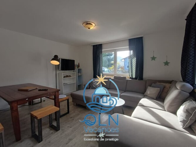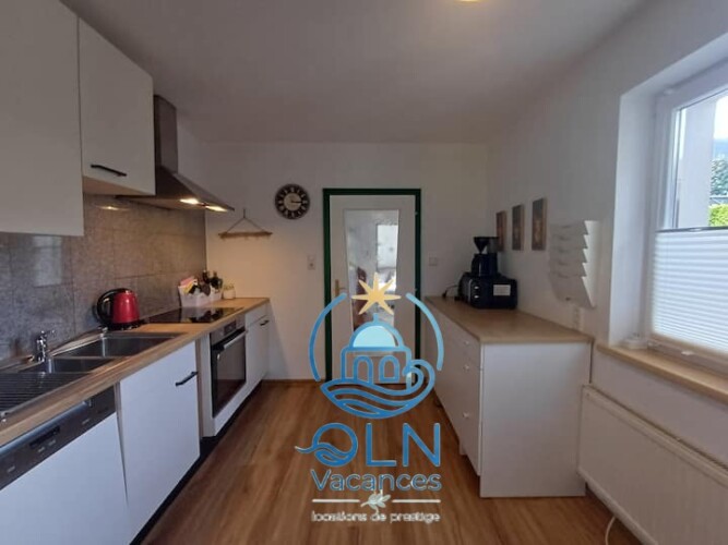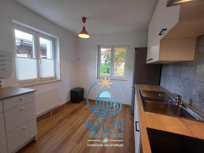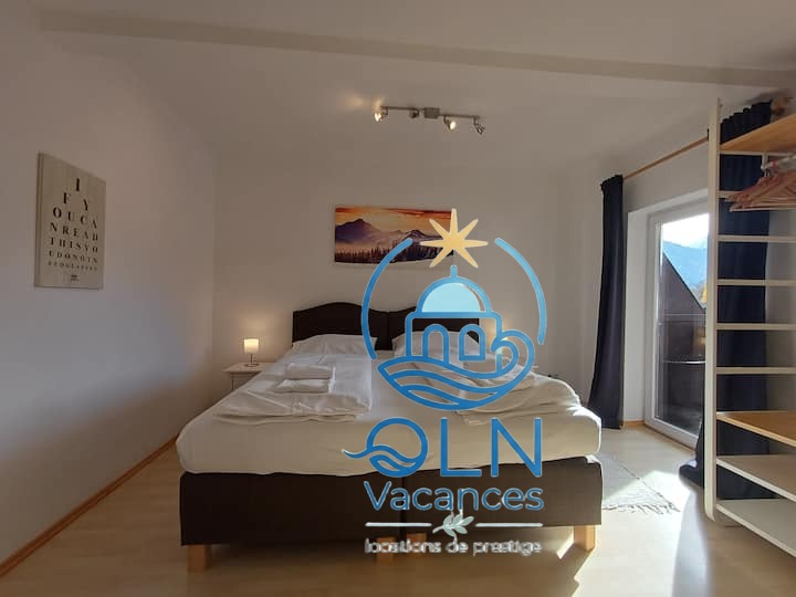 Maison de vacances traditionelle en bois, décor haut de gamme pour 8 personnes.