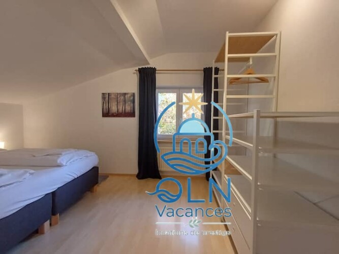 Deuxième étage : deux autres chambres spacieuses avec lits doubles à sommier tapissier et espaces de rangement vous attendent.