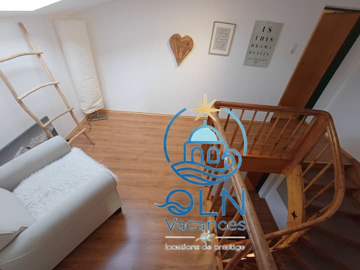 Rez-de-chaussée : vous y trouverez une cuisine entièrement équipée avec cuisinière, four, lave-vaisselle, grand réfrigérateur-congélateur et un salon confortable. À cet étage, vous trouverez également un canapé confortable et une grande table à manger pour huit personnes.