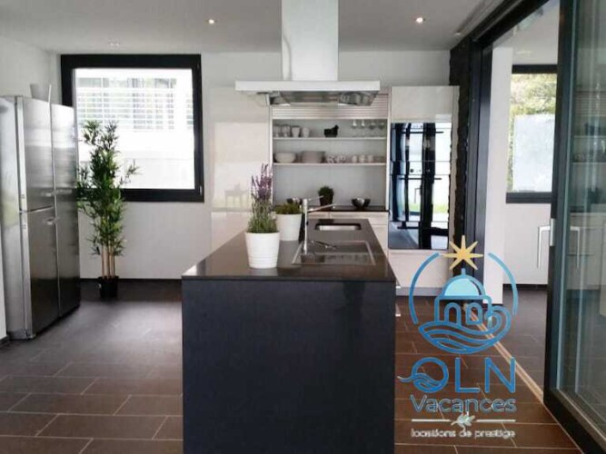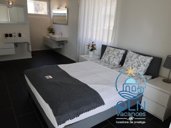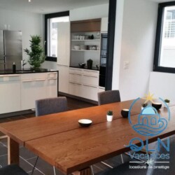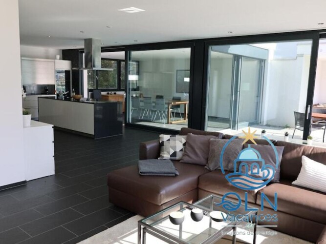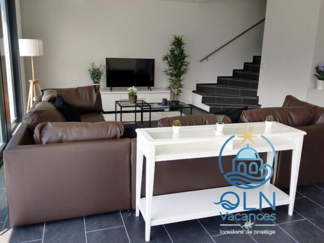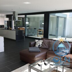 Other living room furnishings (living room 1): Spacious living area with open-plan kitchen and conservatory with dining area, totalling 85m2.Other bedroom furnishings (bedroom1): The room is furnished with a box-spring bed, 2 bedside tables, 1 wardrobe and a small desk. Each room has access to the terrace.Sports facilities in the area: Mountaineering, Golf course, Canoeing, Climbing, Mountain biking, Cycling, Tobogganing, Rowing, Alpine skiing, Cross-country skiing, Sports centre, Surfing, Diving, Water skiing, SailingBasic information- Pets allowed: 4- allowed size of dogs: large (more than 60 cm)- detached house- not observable from the street- non-smoking- Number of bedrooms: 4- Number of bathrooms: 4Top features- WiFi- air conditioning: no- heating: Everywhere- underfloor heating: Everywhere- balcony- terrace- garden: For sole use- completely enclosed (by wall, fence or hedge)