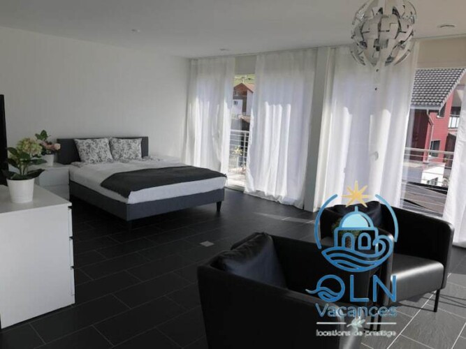 On the attic floor 1 large floor divided into 2 bedrooms with 2 box-spring bedsThe basement and the living area can optionally be extended with a pull-out sofa for 1-2 people