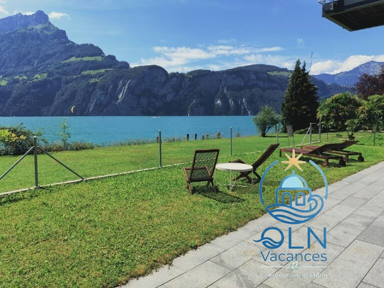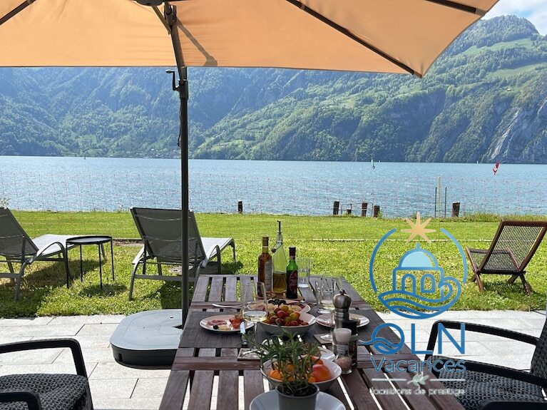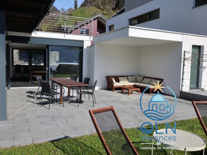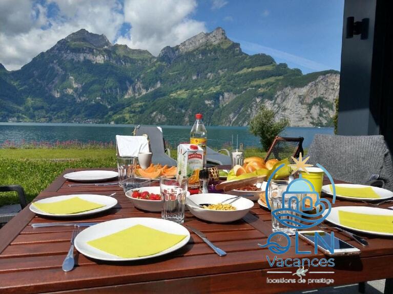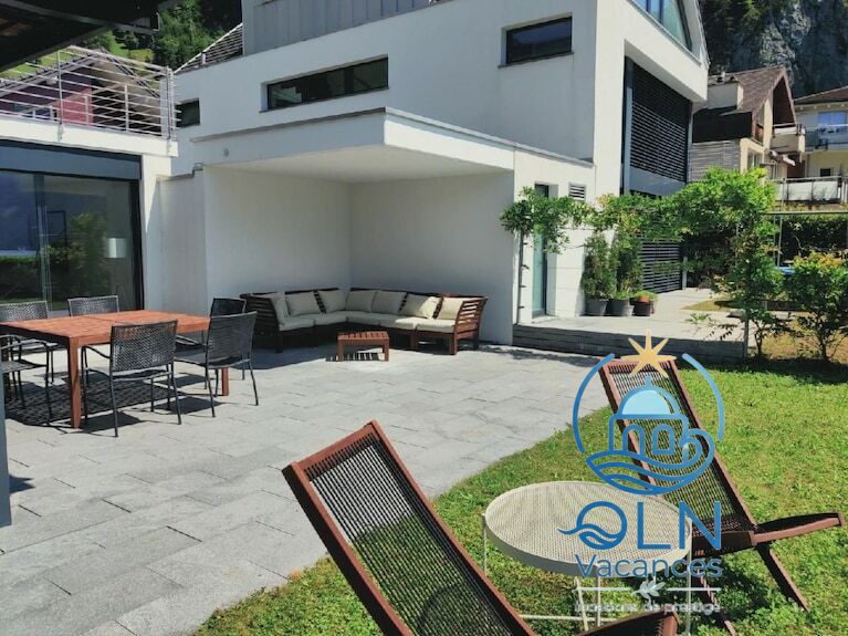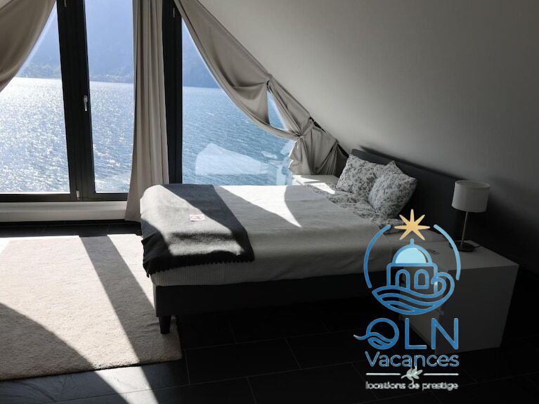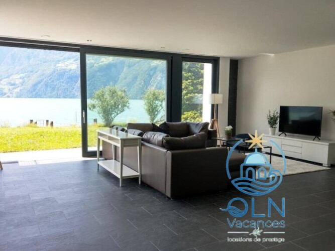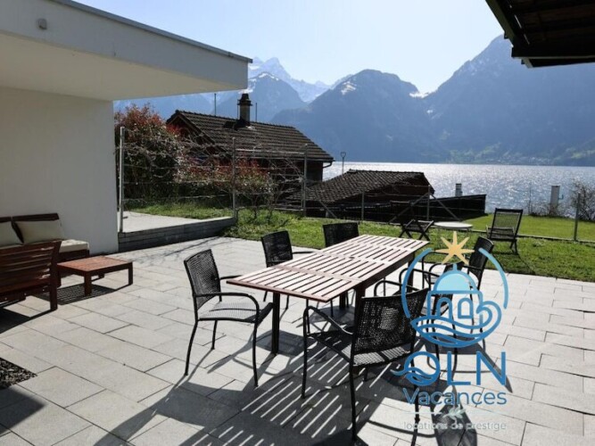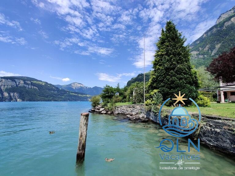 We are offering a dream villa with direct access to the lake in Sisikon! This spacious, unique 8-room villa is located directly on Lake Lucerne with idyllic panoramic views of the lake and mountains. You have an unobstructed view of the mountain landscape and the lake. A private bathing area on the lake with a bathing ladder is for your exclusive use. This villa is characterised by light-flooded rooms and a luxurious, modern interior. The house is fully furnished and modernly equipped. All you need to do is bring your suitcases. The house is suitable for a maximum of 10 people, making it ideal for two families. The villa has a total of 5 bedrooms.