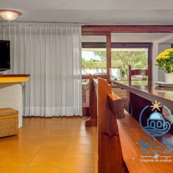 Le séjour est équipé d’une grande table pour huit personnes, et la véranda extérieure dispose de tables pour huit convives.