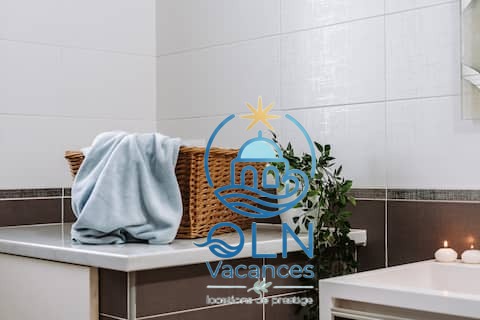 Les équipements supplémentaires comprennent un Wi-Fi haut débit (adapté aux appels vidéo), une télévision, la climatisation, une machine à laver ainsi qu’un séchoir.