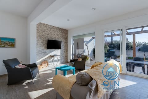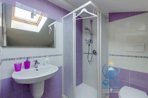 Cette propriété de 2 étages comprend un salon, une cuisine bien équipée avec lave-vaisselle, 4 chambres et 3 salles de bains et peut donc accueillir 8 personnes.