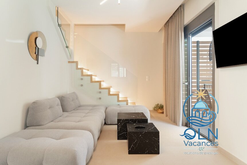 Située à Περιγιάλι, la villa Mella Roa – Onyx sur deux étages offre une vue superbe sur la mer Ionienne.