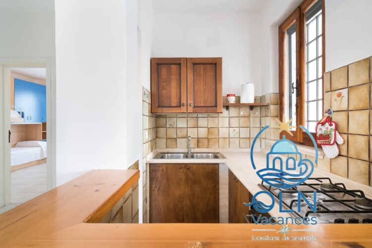 La maison de vacances offre un séjour confortable au style rustique, une cuisine bien équipée, deux chambres et une salle de bain, pour un maximum de quatre personnes.