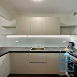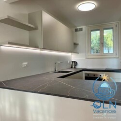 La villa dispose de trois chambres, deux salles de bains modernes, d’une cuisine entièrement équipée et d’un grand salon avec coin repas.
